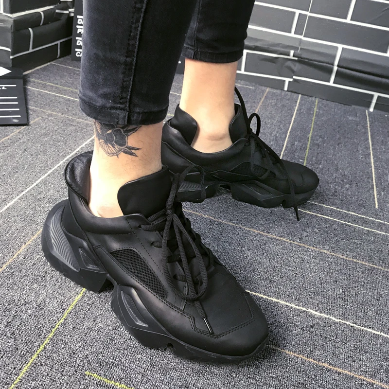 Hot Sale Designer Black Sneakers Men 2019 Summer Personalized Platform Chunky Casual Shoes 100% Genuine Leat