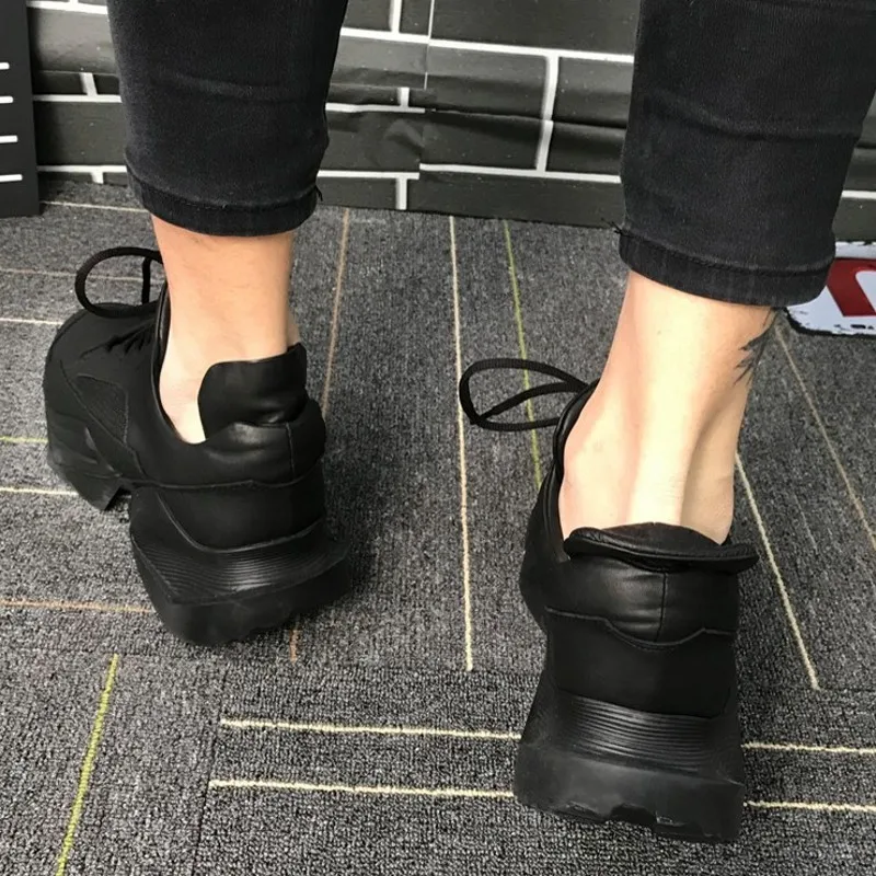 Designer Black Sneakers Men 2019 Summer Personalized Platform Chunky Casual Shoes 100% Genuine Leat