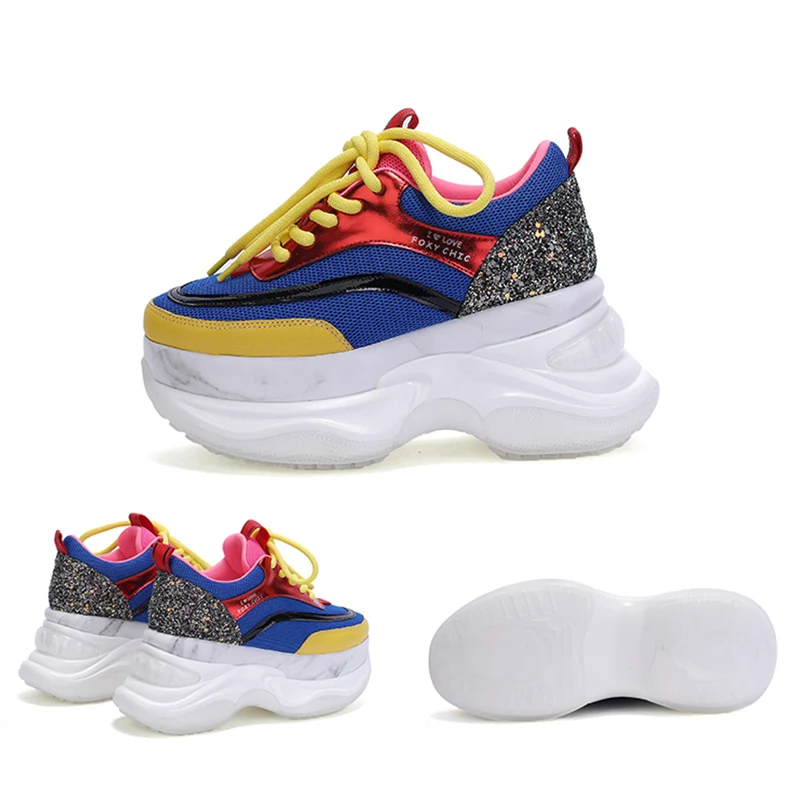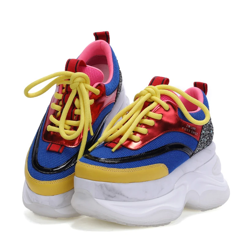 2020 Fashion Chunky Sneakers Women Colorful Thick Sole Flats Female Platform Ladies Genuine Leather